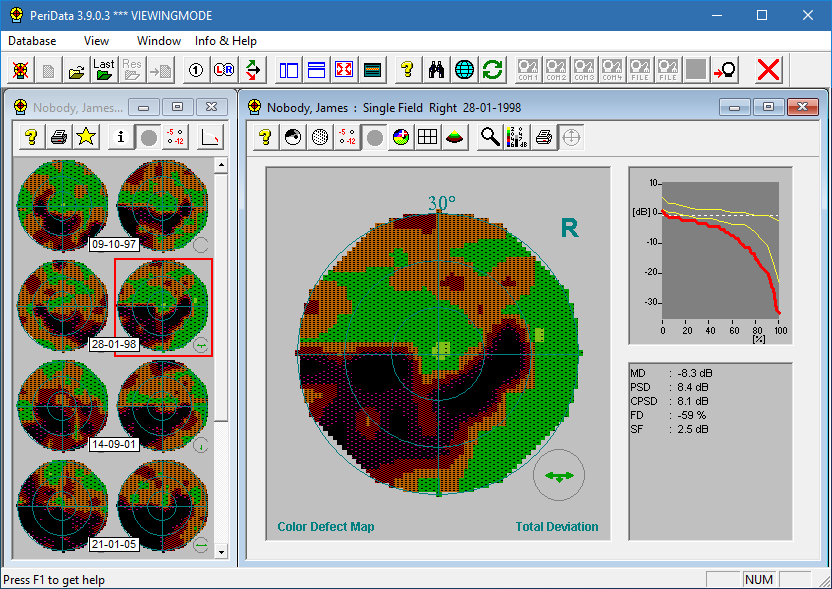 Perimeter sind Geräte zur Messung des Gesichtsfelds und werden in Augenkliniken und Augenarztpraxen verwendet. PeriData ist die universelle Software, die Untersuchungsdaten